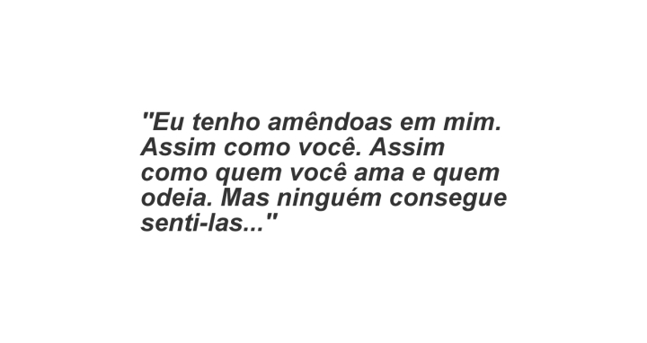 "Amêndoas" é um livro da autora coreana Won-pyung Sohn. A história gira em torno de Yunjae, um adolescente que sofre de alexitimia, ou a incapacidade de identificar e expressar sentimentos, como medo, tristeza, desejo ou raiva. Como resultado, ele vive uma vida isolada e solitária, sem amigos ou conexões emocionais.
